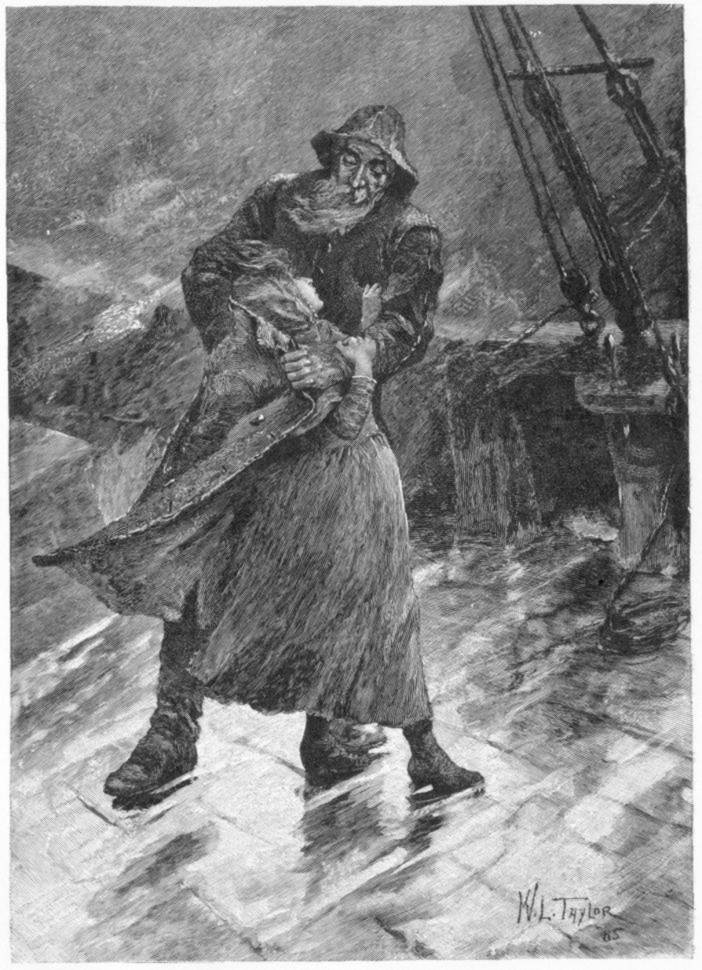 "Come hither! come hither, my little daughter, And do not tremble so; For I can weather the roughest gale, That ever wind did blow." He wrapped her warm in his seaman's coat, Against the stinging blast; He cut a rope from a broken spar, And bound her to the mast. |
