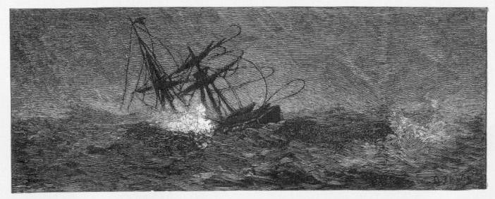 And fast through the midnight dark and drear, Through the whistling sleet and snow, Like a sheeted ghost, the vessel swept Towards the reef of Norman's Woe. And ever the fitful gusts between, A sound came from the land; It was the sound of the trampling surf, On the rocks and the hard sea-sand, The breakers were right beneath her bows, She drifted a dreary wreck, And a whooping billow swept the crew Like icicles from her deck. |