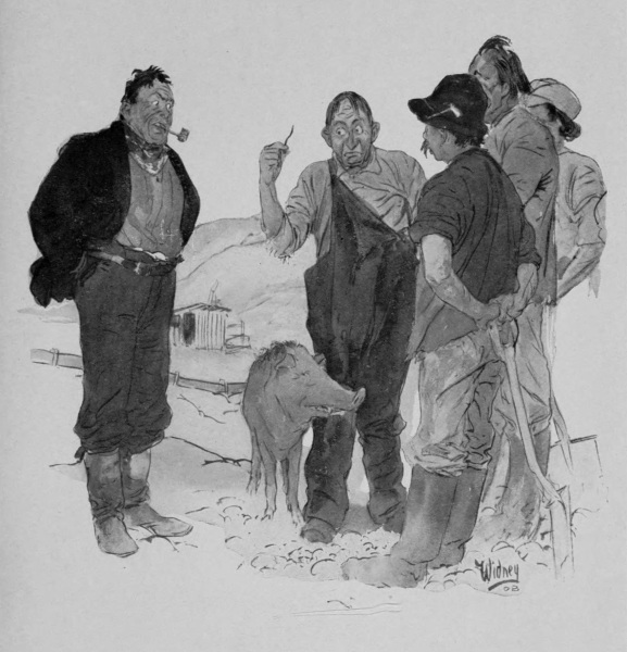 “Well, John put in a solid eight months without ever pinting a foot toward town. Then he collected and went off for a little quiet trip on his own hook. He said that nobody could ask for a better people than we were, yet we was kind of rough in our ways, and he wanted to see domestic felicity, and the soothing inflooence of Woman. That there241 was a strain in his ideas that made him need kind and gentle treatment oncet in so often.