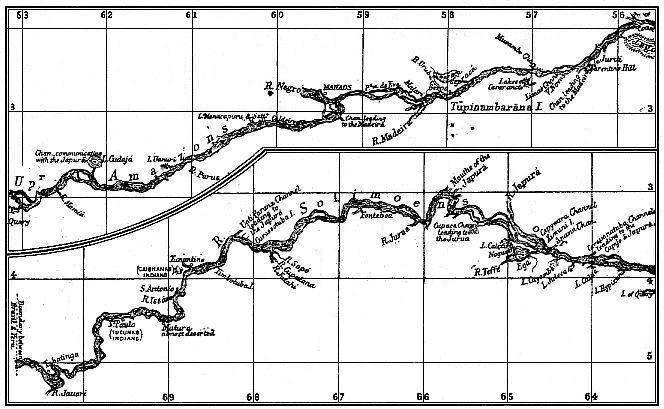 We were four days on the road. The pilot, a Mameluco of Ega, whom I knew very well, exhibited a knowledge of the river and powers of endurance which were quite remarkable. He stood all this time at his post, with the exception of three or four hours in the middle of each day, when he was relieved by a young man who served as apprentice, and he knew the breadth and windings of the channel, and the extent of all the yearly-shifting shoals from the Rio Negro to Loreto, a distance of more than a thousand miles. There was no slackening of speed at night, except during the brief but violent storms which occasionally broke upon us, and then the engines were stopped by the command of Lieutenant Nunes, sometimes against the wish of the pilot. The nights were often so dark that we passengers on the poop deck could not discern the hardy fellow on the bridge, but the steamer drove on at full speed, men being stationed on the look-out at the prow, to watch for floating logs, and one man placed to pass orders to the helmsman; the keel scraped against a sand-bank only once during the passage.