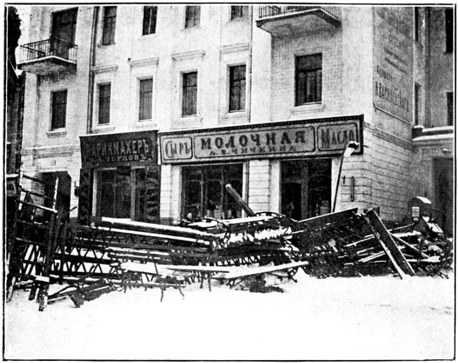| Reports of the revolution—Guns on the Theatre Square—Explosion in a gun-shop—Increase in the fighting—Sledges refuse the wounded—The merciful soldier—A schoolboy killed—The revolutionist position—The barricade forts—Barricades never held—The revolutionist tactics—Varieties in barricade—The troops protect their right flank—Barricades still growing—Police [ix]in disguise | 155 |