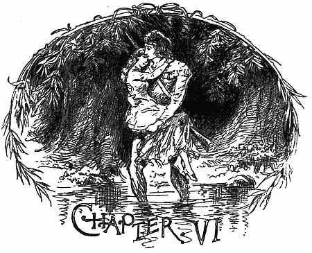 We stopped at a little pool, which reflected our two horses and our two forms; we remained in silence for a time. It was cool there, obscure, solemn as in a Gothic cathedral, and somewhat awe-inspiring. The light of day came in bedimmed, greenish from the leaves. Some bird, hidden under the cupola of lianas, cried, “No! no! no!” as if warning us not to go farther; Katty began to tremble and nestle up to the horses; Lillian and I looked at each other suddenly, and for the first time our lips met, and having met could not separate. She drank my soul, I drank her soul. Breath began to fail each of us, still lips were on lips. At last her eyes were covered with mist, and the hands which she had placed on my shoulders were trembling as in a fever: she was seized with a kind of oblivion of her own existence, so that she grew faint and placed her head on my bosom. We were drunk with each other, with bliss, and with ecstasy. I dared not move; but because[59] I had a soul overfilled, because I loved a hundred times more than may be thought or expressed, I raised my eyes to discover if through the thick leaves I could see the sky.