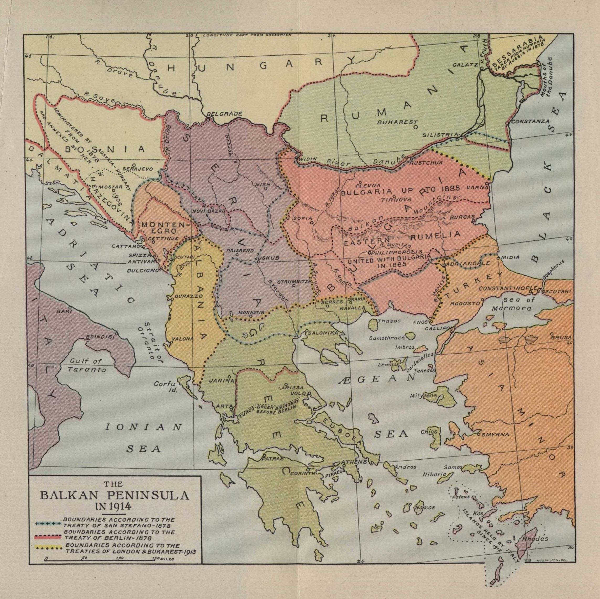 I. The Balkan Peninsula according to the Treaties of San Stefano, Berlin, Lausanne, and Bukarest