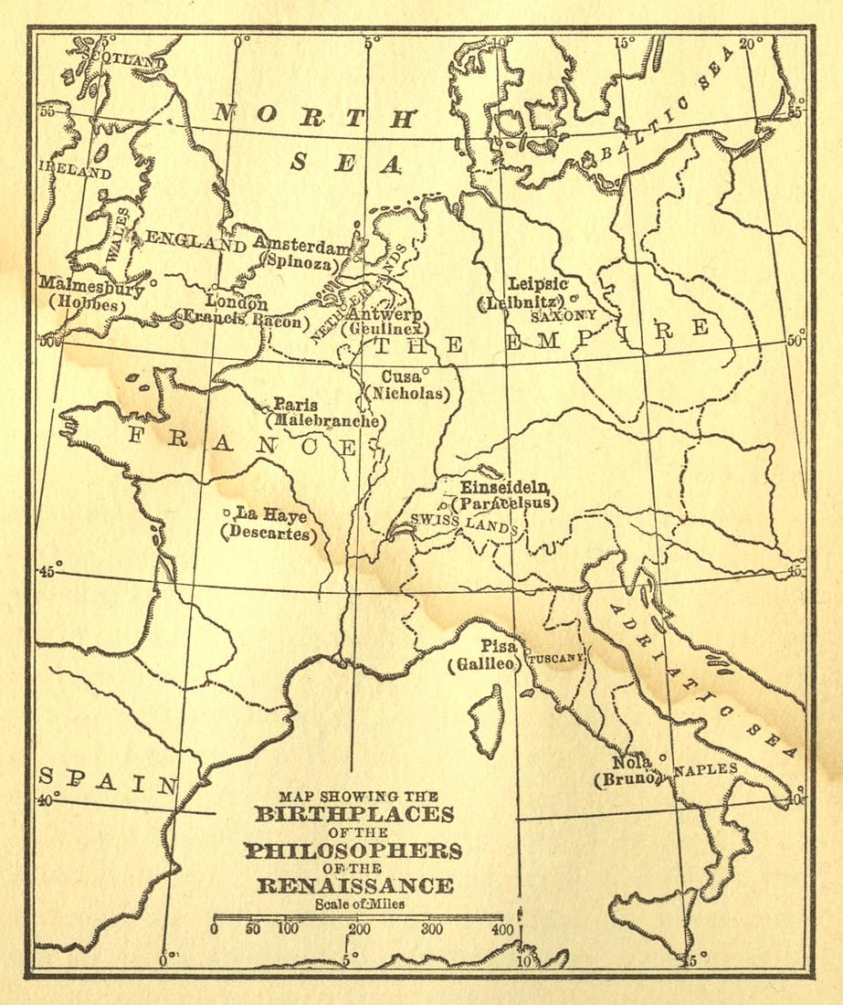 | Map showing the Birthplaces of the Chief Philosophers of the Renaissance | 30 | ||||
