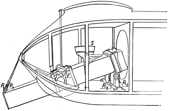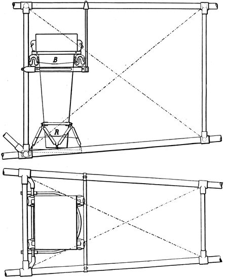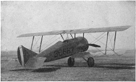 The fuselage consists usually of a light hollow framework of spruce or ash, divided into a series of bays or compartments by upright members, connecting the longerons, which are the four corner members, running fore and aft, of the plane. Diagonally across the sides and faces of these bays 23are stretched taut piano wires, and the whole structure is covered with canvas or linen fabric. Cross-wires and fabric are omitted from the top of one or more bays to permit their being used as cockpits for pilot and observer. In later designs of planes the wire and fabric construction has been superseded by ply-wood veneer, thereby strengthening the fuselage so that many of the diagonal bracing wires on the inside are dispensed with. This greatly increases the accessibility of the spaces in which cameras and other apparatus must be carried.