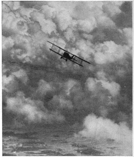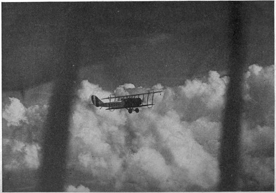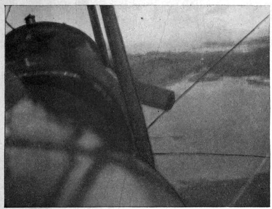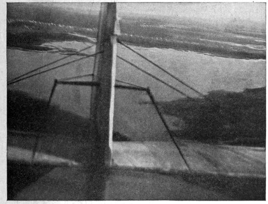 At first the passenger's chief impressions are apt to be the deafening noise of the motor, the heavy vibration, the terrific wind in his face. If he raises his hand above the edge of the cockpit he realizes the magnitude of wind resistance at the speed of the plane, and hence the importance of the stream-line section of all struts and projecting parts.