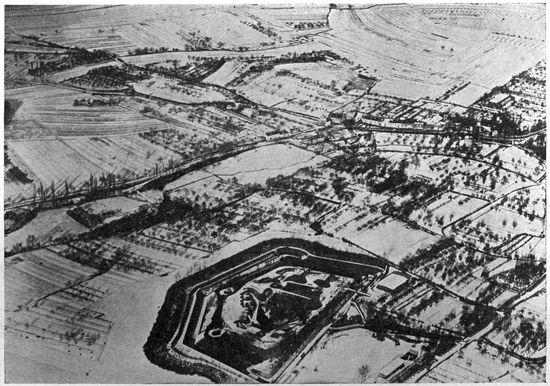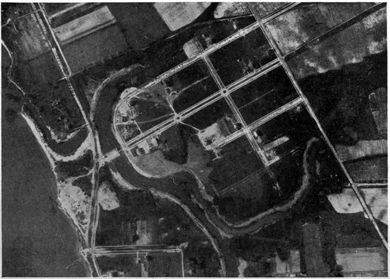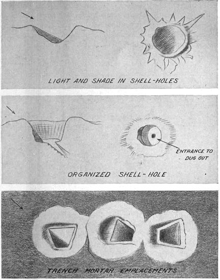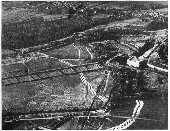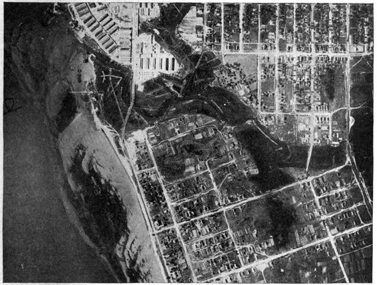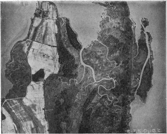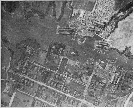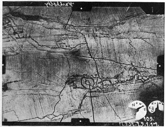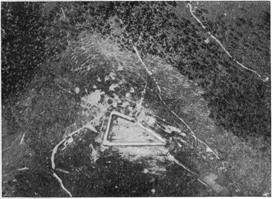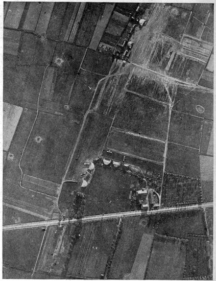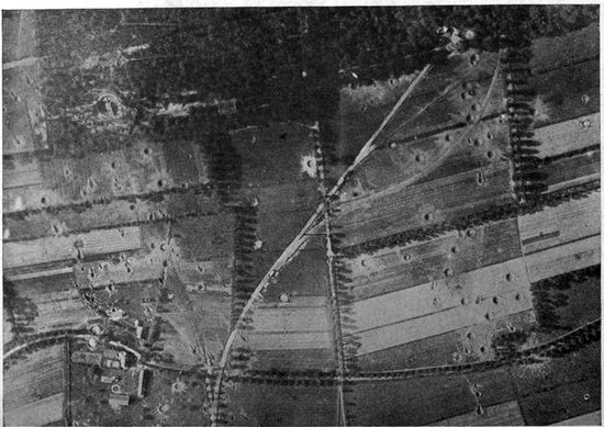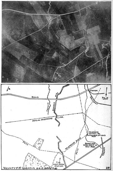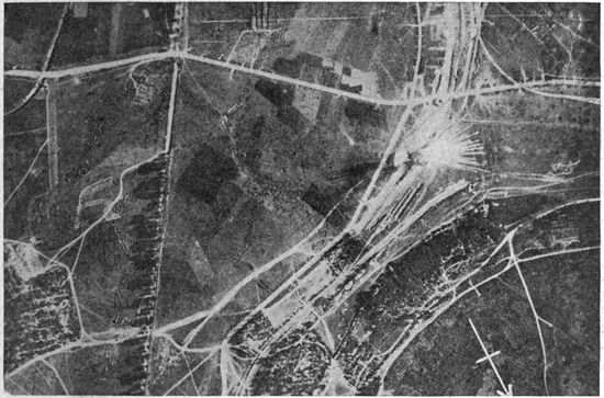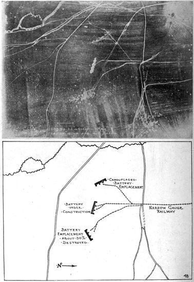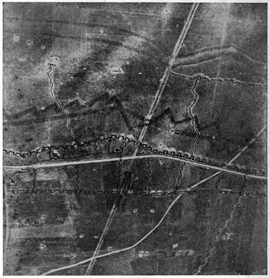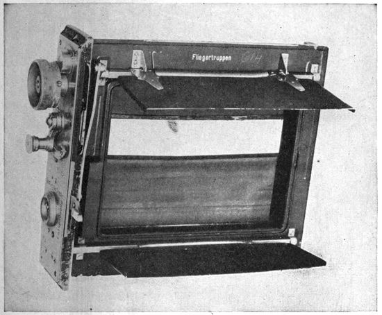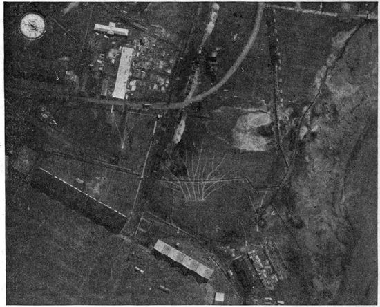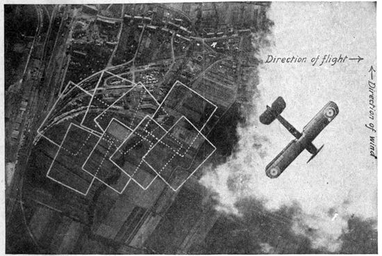 Development of Airplane Photography in the Great War.—The airplane has totally changed the nature of warfare. It has almost eliminated the element of surprise, by rendering impossible that secrecy which formerly protected the accumulation of stores, or the gathering of forces for the attack, a flanking movement or a “strategic retreat.” To the side having command of the air the plans and activities of the enemy are an open book. It is true that more is heard of combats between planes than of the routine task 17of collecting information, and the public mind is more apt to be impressed by the fighting and bombing aspects of aerial warfare. Nevertheless, the fact remains that the chief use of the airplane in war is reconnaissance. The airplane is “the eye of the army.”