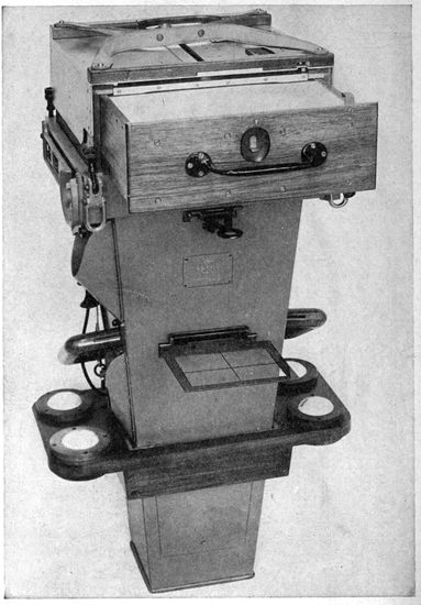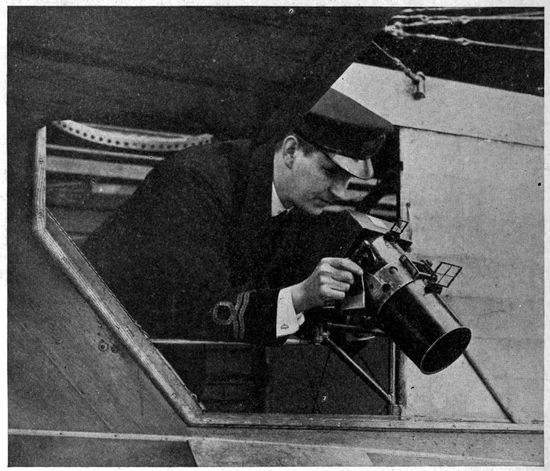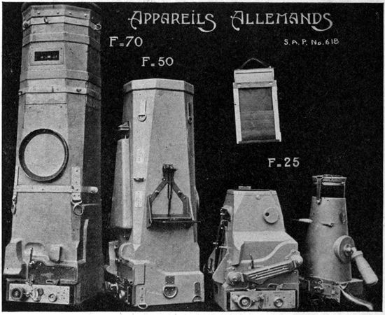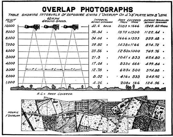 To another military necessity is due in great measure the forced development of aerial photographic apparatus in the direction of automatic operation. The practice of entrusting the actual taking of the pictures to observers with no photographic knowledge, whose function was merely to “press the button” at the proper time, necessitated cameras as simple in operation as possible. The multiplicity of tasks assigned to the observer, and in particular the ever vital one of watching for enemy aircraft, made the development of largely or wholly automatic cameras the war-time ideal of all aerial photographic services. Whether the freeing of the observer from other tasks will relegate the necessarily complex and expensive automatic camera to strictly military use remains to be seen.