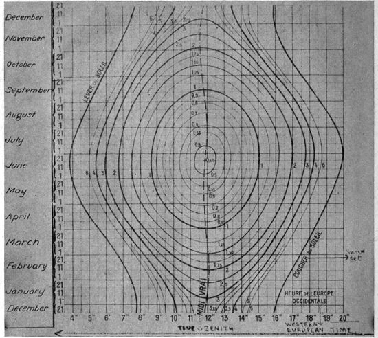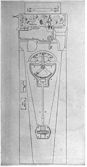 Airplane Instruments.—Mounted on boards in front of the pilot and observer are various instruments to indicate 33the performance of engine and plane (Fig. 2). Those of interest to the photographic observer are the compass, the altimeter, the air speed indicator, the inclinometers.