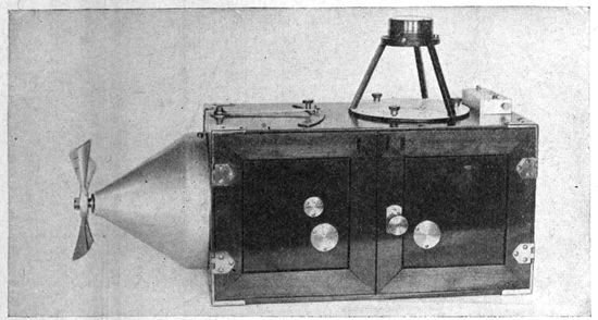 The air speed indicator consists of a combination of Venturi and Pitot tubes, producing a difference of pressure when in motion through the air which is measured on a scale calibrated in air speed. This instrument is important for determining, in combination with wind speed, the ground speed of the plane, on the basis of which is calculated the interval between exposures to secure overlapping photographs. Its accuracy is well above that necessary for the purpose.