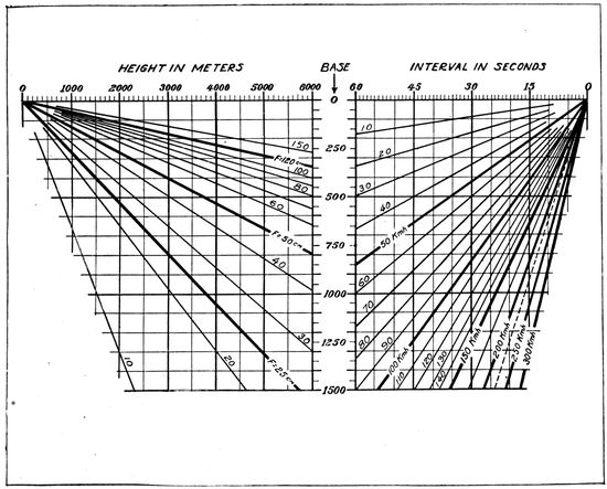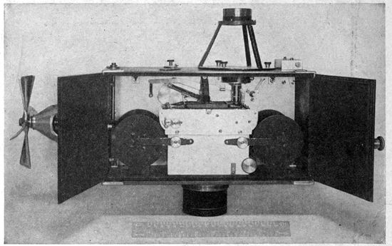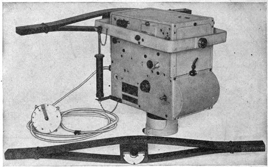 The altimeter is of the common aneroid barometer type. On American instruments it is usually graduated to read in 100-foot steps. While somewhat sluggish, it is quite satisfactory for all ordinary determinations of altitude in photographic 34work. Were primary map making to be undertaken, where the scale was determinable only from the altitude and focal length of the lens, the ordinary altimeter is hardly accurate enough.