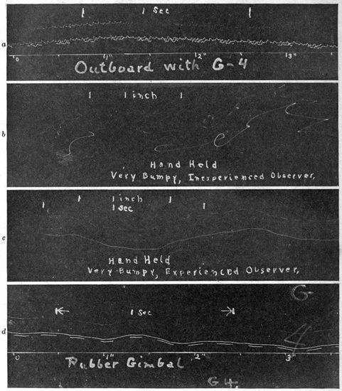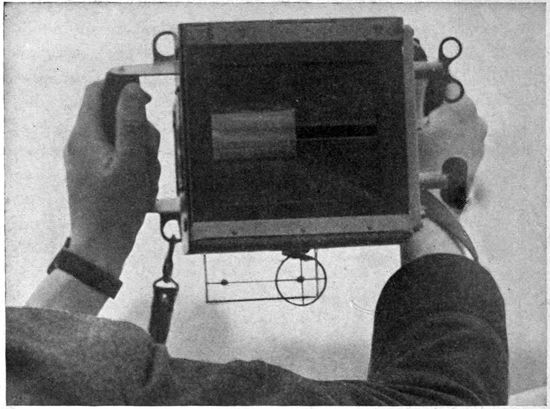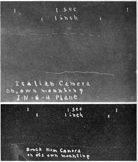 As part of the “joy ride” the pilot may do a few “stunts,” such as a “stall,” a “loop,” a “tail spin,” or an “Immelman.” From the photographic standpoint these are of interest in so far as they bear on the question of holding the camera in place in the plane. The thing to be noted here is that (particularly in the loop), if these maneuvers are properly performed, there is little tendency toward relative motion between plane and apparatus. In a perfect loop it would, for instance, be unnecessary, due to the centrifugal force outward, for the observer to strap himself in. It is, however, unwise to place implicit confidence in the perfection of the pilot's aerial gymnastics. No apparatus should be left entirely free, although, for the reason given, comparatively light fastenings are usually sufficient.