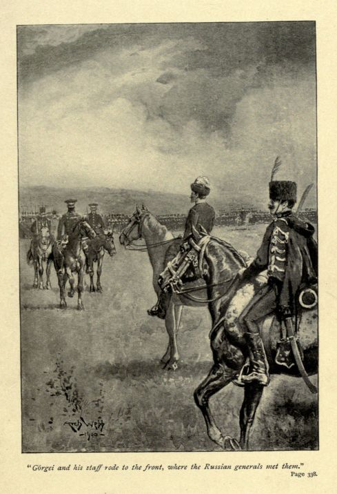"GÖRGEI AND HIS STAFF RODE TO THE FRONT, WHERE THE RUSSIAN GENERALS MET THEM"