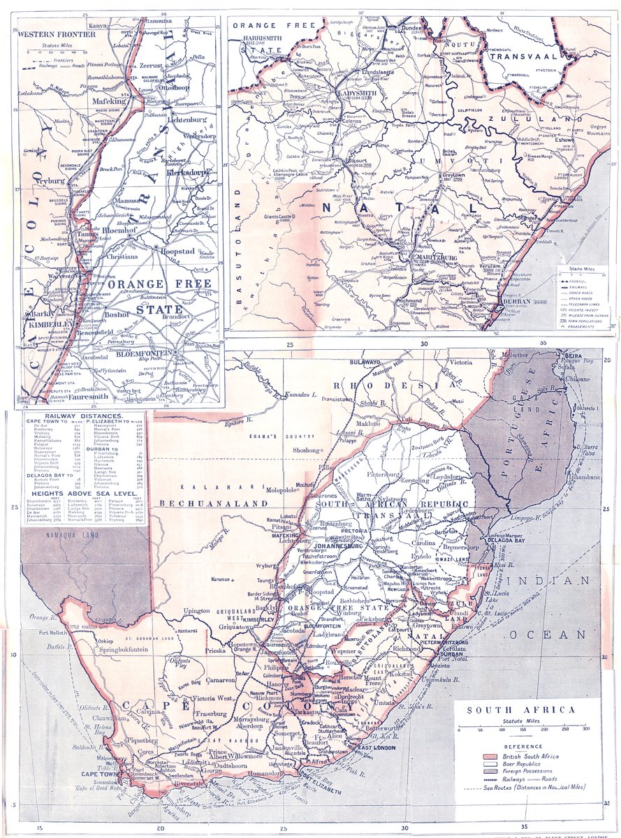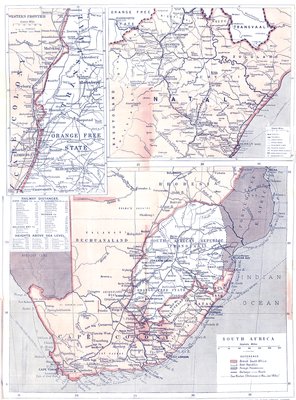 If we look at the map of South Africa as it stood in the days before the war, we shall observe that in the centre of British territories, cut off from all access to the sea, lay two states, one independent of England—the Orange Free State; the other, the Transvaal, in a position of quasi-independence. For a few miles, it is true, the Transvaal boundary on the east is conterminous with Portuguese possessions; indeed, it approaches very close to the magnificent harbour of Delagoa Bay.