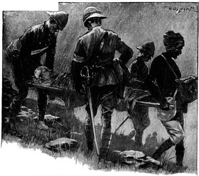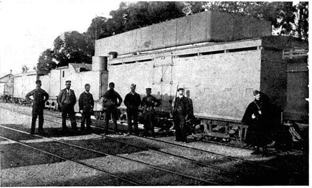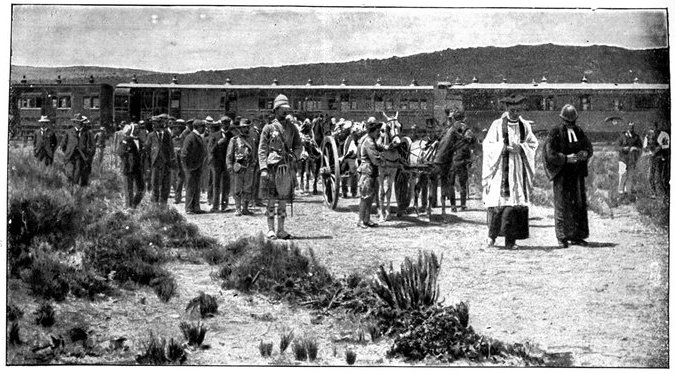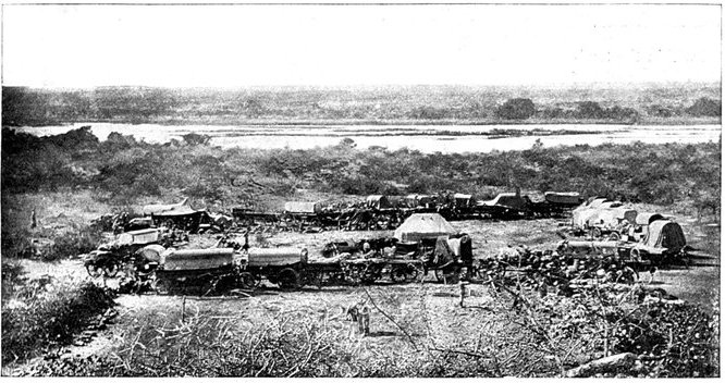 To the north of Kimberley a considerable force of Boers, with the great gun from Kamfers Dam, was in full retreat, though much troubled by the unwieldiness of this weapon. Anxious if possible to capture it, General French had started out at 3·30 a.m. of the 16th with all available men and guns. His horses were in such a state that rapid movement was out of the question. He rode due north, followed by the infantry in the town, who came on by rail, and got as far as Macfarlane's Siding, two stations north. Continual skirmishing with the Boer rearguard was the chief feature of the day, and the cavalry engaged suffered some casualties, about a dozen men being killed or wounded. The horses were too worn out to get near the big gun, and the Boers succeeded in carrying it off, but they had to abandon[Pg 364] a laager at Dronfield, with one gun, several waggons, and a great quantity of stores. In the British division neither men nor horses had food or water from early in the morning till late at night, and the suffering of all was terrible. The horses in particular, already sorely tired by their 150 miles' ride from Modder River Camp to Kimberley, began to drop right and left in the most alarming manner. Those that still staggered on were mere bundles of skin and bone, in the most urgent need of a week's rest and food, which, however, was not to be theirs.
