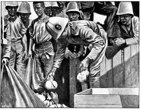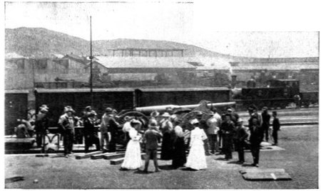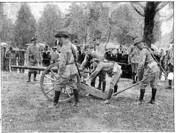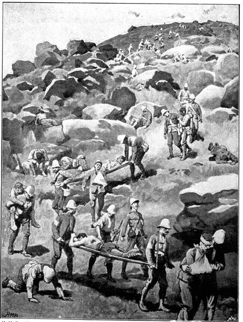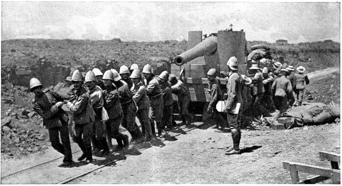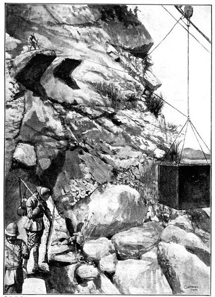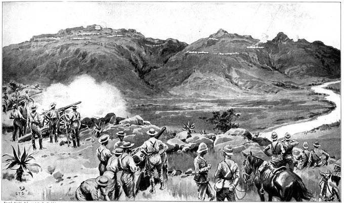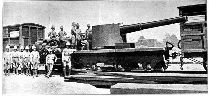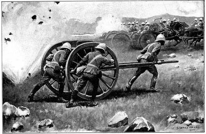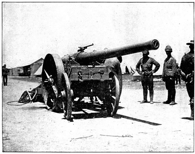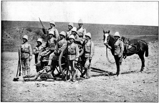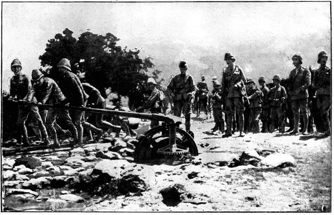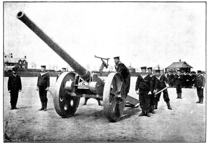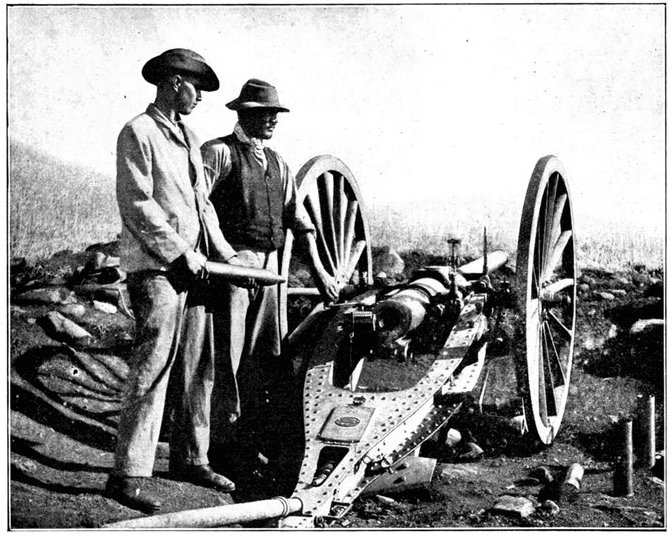 Wheel of the carriage of a 12-pounder gun collapsed, whereupon the sailors lifted it from its carriage and hauled it to the top of a kopje, a distance of two miles.