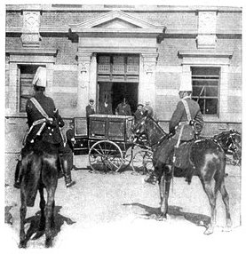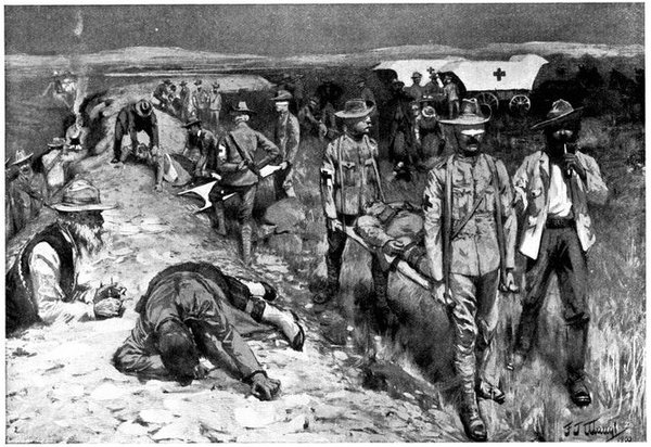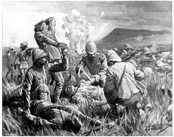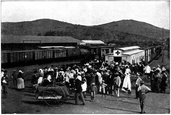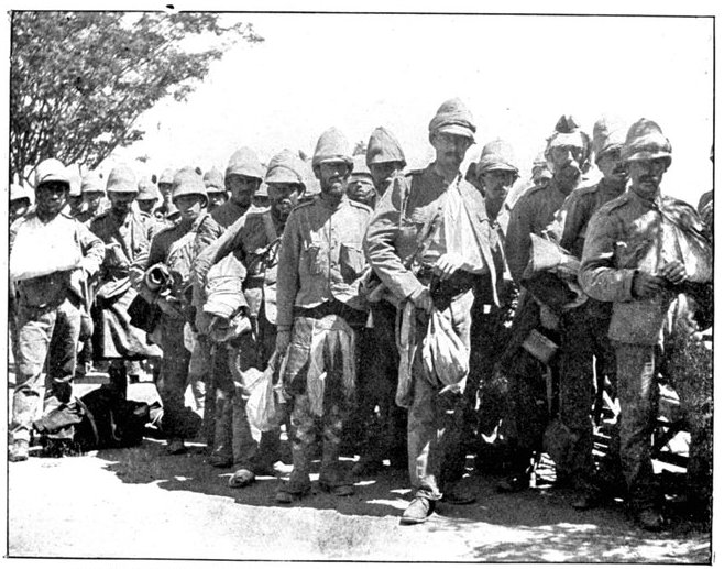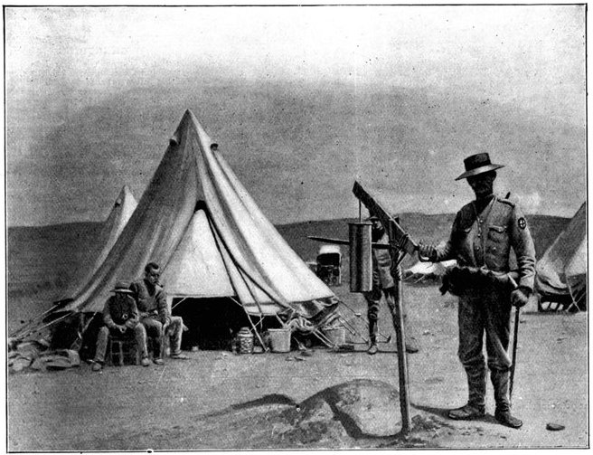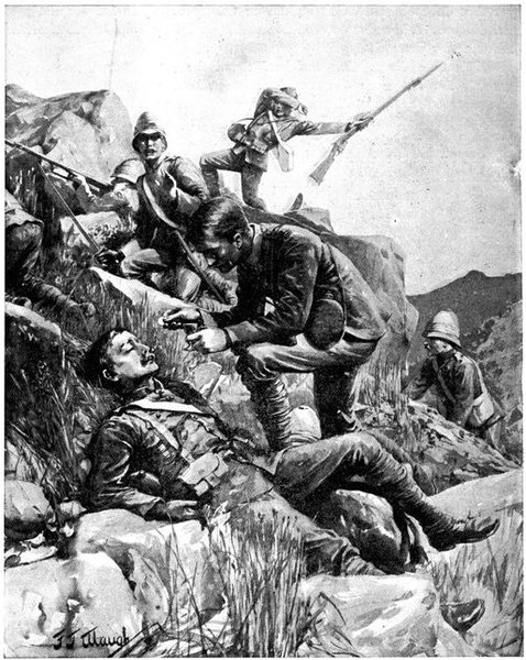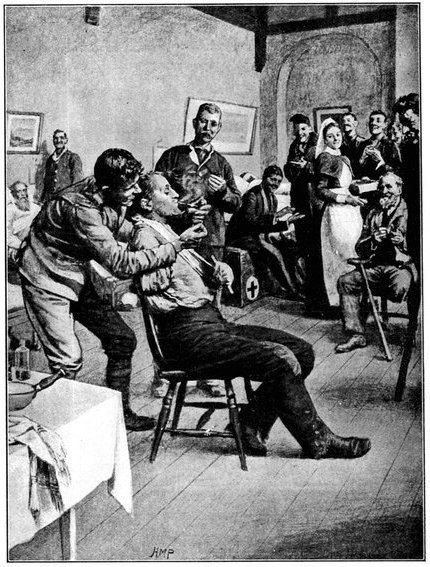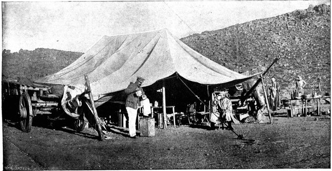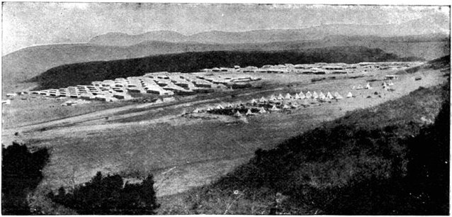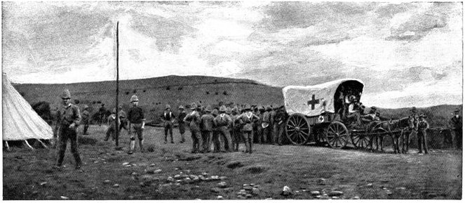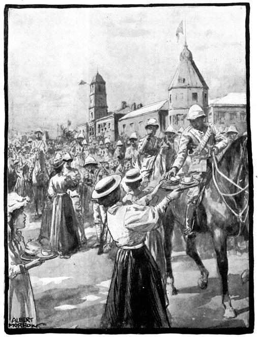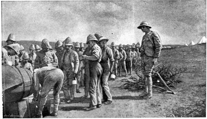 On the morning of the 15th the general advance of the Seventh and Ninth Divisions had been resumed. The 15th (Wavell's) Brigade of the Seventh Division was directed upon Jacobsdal; the other brigade and the Ninth Division began their march to join the Sixth Division at Klip Drift. Jacobsdal was not seized without a brush with the enemy. On the 14th it had been visited by our patrols and found unoccupied, but with the hospitals full of British and Boer wounded. On their way back the patrols were attacked by the Boers, and nineteen men wounded or captured. They had come into contact with a small detachment sent by Cronje to hold the village. Early in the afternoon of the 15th, the 15th Brigade approached the place. It was a small, peaceful-looking village of white houses, bowered in green trees, pleasant of aspect amid the arid brown expanse of the treeless veldt. But it soon began to wear another and far less peaceful aspect. The British advance was covered by a cloud of scouts drawn from the City Imperial Mounted Infantry Volunteers. They were within 800 yards of the village, when suddenly a terrific fire was opened from gardens on the outskirts. The sergeant-major in charge of the party and two privates were wounded. The men behaved with great steadiness and bravery upon this historic occasion—the first time that a Volunteer Force had been under fire. But the Boer resistance could not be maintained in the face of a British brigade 4,000 strong. The 75th Field Battery was brought up, the town was shelled, and the enemy hastily retired towards Magersfontein and Cronje's entrenchments. Lord Roberts arrived, and at the head of his troops made his entry. There was no looting or plundering. The British Army, always famous for its rigid discipline in war, filed in in perfect order, and paid for everything which it took. Military police patrolled the streets; sentries stood in front of every store. The hungry and thirsty khaki-clad men bought up all the bread and milk that they could get, and the Boers began almost to bless a war which had brought them such customers. They had[Pg 360] expected merciless treatment, for the Boer Governments, to stiffen their people's resistance, had studiously spread the report that where the British came they ravished, plundered, and destroyed. The wives of the burghers, however, avenged the invasion of the Free State by the exorbitance of their prices, and thus turned the tables upon the conquerors. One of Lord Roberts' first acts was to visit the large German hospital which was established in the village. In it he found 37 British wounded; all the arrangements were admirable in the extreme. Indeed, if more than one British officer can be believed, in comfort and attention to the suffering it far outdistanced the British field hospitals.