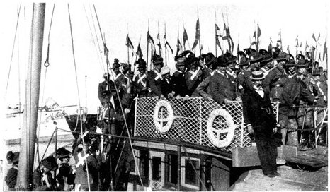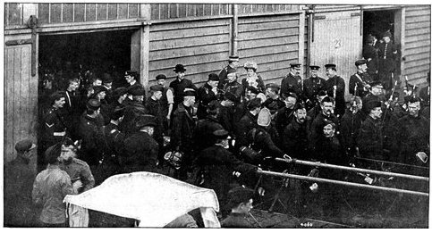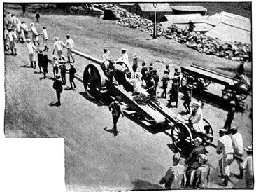 BRITISH BLUEJACKETS CARRYING THEIR GUN.