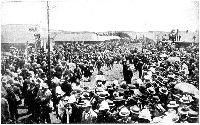 In the final rush another Boer laager was captured, with a great quantity of stores and ammunition. The bulk of the British force bivouacked in or near this camp, where there was a good supply of water; only General French and some hundreds of his men entered the delivered city. It still remained to be seen whether Kimberley was really free, or whether,[Pg 359] as Boer sympathisers inside and outside the town pretended, General French had simply walked into a trap set by Cronje.