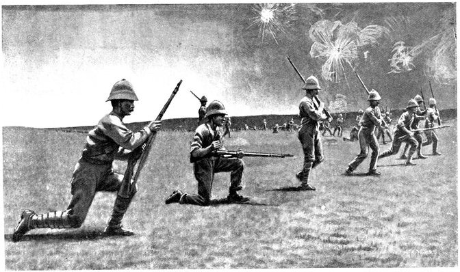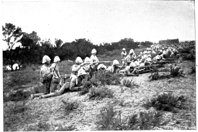 The chief point of interest in the South African war, apart from its political aspect, will always be that it was the first great struggle fought out under the new conditions which smokeless powder has introduced. No invention has made a greater change in the art of war than this; the revolution is so profound that it can only be compared with that brought about by the general adoption of firearms four hundred years or more ago. So late as the Spanish-American war of 1898 a large part of the United States army was equipped with the Springfield rifle, firing smoke-producing powder, so that in that war, in spite of the fact that the Spanish Army was supplied with the Mauser, the full consequences of the revolution could not be observed and ascertained. The British Army, when it took the field in October, 1899, was face to face with factors the precise effect of which could only be conjectured. Magazine, or, to give them their older name, "repeating," rifles had been employed as far back as the American Civil War of 1861-5, though they were in every way vastly inferior to our modern Mausers and Lee-Metfords. But smokeless powder was a distinctly novel element.