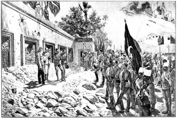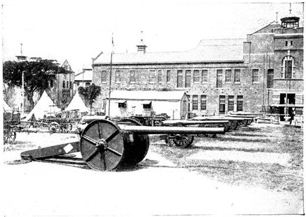 The onward movement was speedily resumed. Two squadrons were ordered to push on with all possible speed into Kimberley itself, and before them the enemy were seen to be galloping off to the east as fast as Boers could go. To cut off their retreat, if possible, General French swerved to the right, when suddenly a Boer gun to the east of Kimberley opened a sharp fire. General Porter at once brought up his horse guns and replied, but the enemy had no stomach for a fight. They hastily fell back, taking with them their gun, and unfortunately the British horses were too exhausted to pursue. Far away from the north at Kamfers Dam was heard the heavy note of the great Boer 6-in. Creusot, still showering its deadly bolts upon the town, in ignorance that its prey had already as good as escaped. Then, as night fell, and the array of troopers and guns entered into the town, weary, thirsty, sweating, but conscious of a deed done that would ring through the world and fill with exultant joy the British race, the sullen boom of this weapon ceased also, and peace returned to Kimberley.