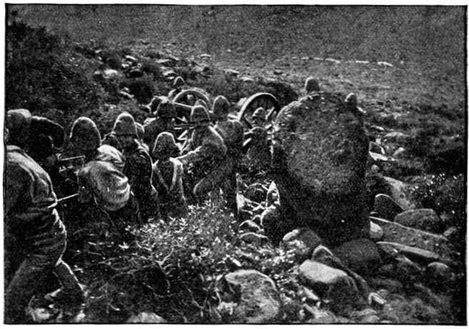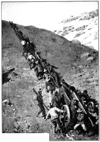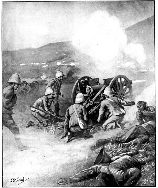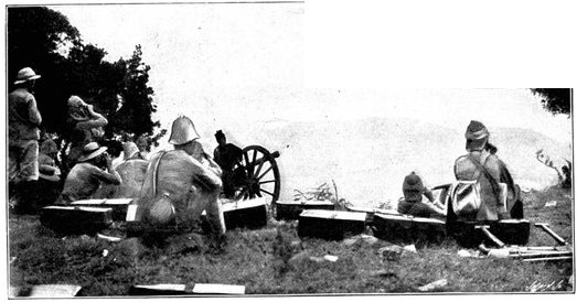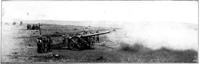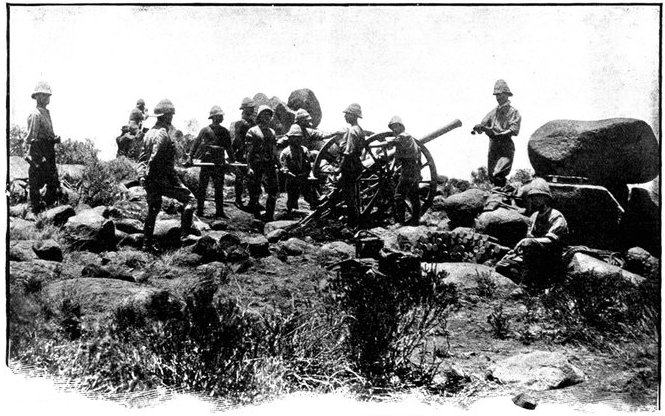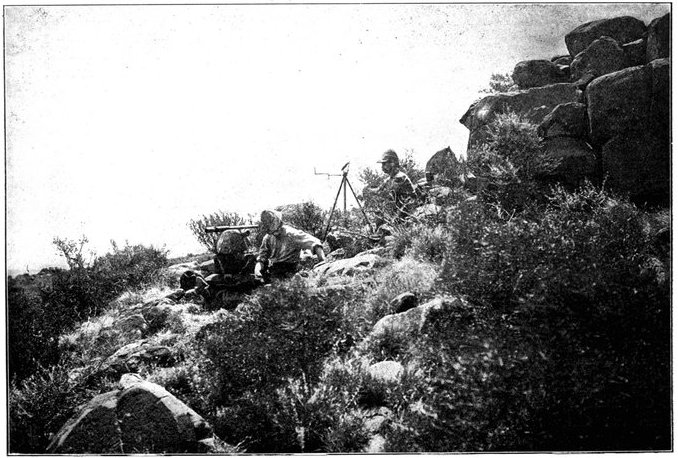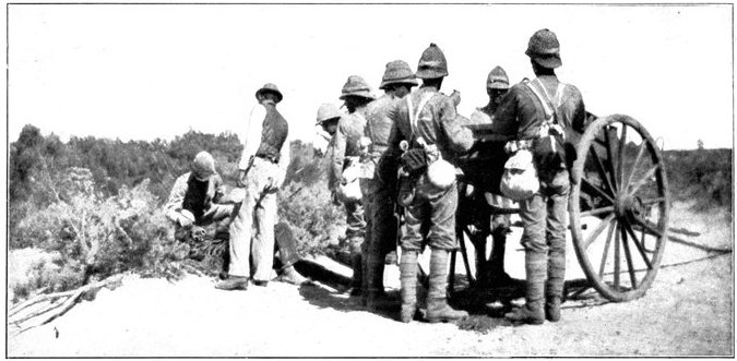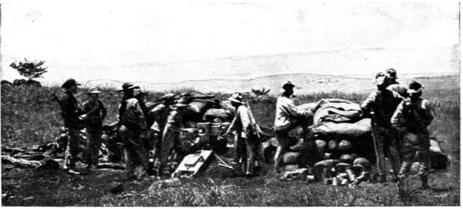 The same invisibility which marked the Boer riflemen marked also their artillery, which was not massed, but scattered gun by gun, wide apart and artfully concealed. As one result of this disposition, we seldom succeeded in silencing the Boer weapons; but, on the other hand, except at Spion Kop, they inflicted trivial loss upon us. The enemy's most effective gun was the "Pom-Pom," which, though it caused infinitesimal loss of life, was especially dreaded by our soldiers for the great rapidity of its discharge. The frequent flashes from its muzzle, however, rendered it comparatively easy to locate and to put out of action.