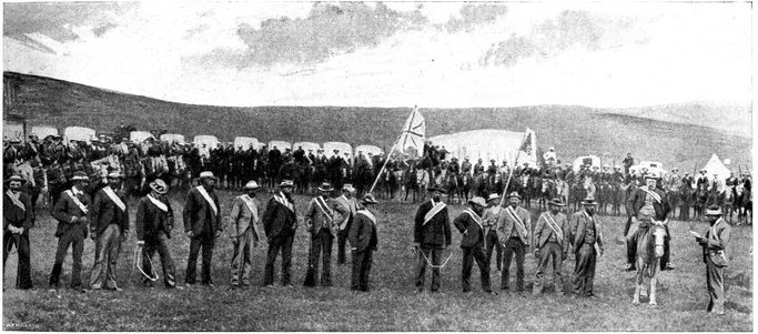 On October 11, 1899, began what was to prove the greatest struggle in which England has engaged since the peace that followed Waterloo. For at 5 p.m. on that day the forty-eight hours allowed by the Transvaal Government for a favourable answer to its ultimatum expired, and the forces of the two Boer Republics put themselves in motion to carry out their favourite threat of sweeping the English from South Africa into the sea.