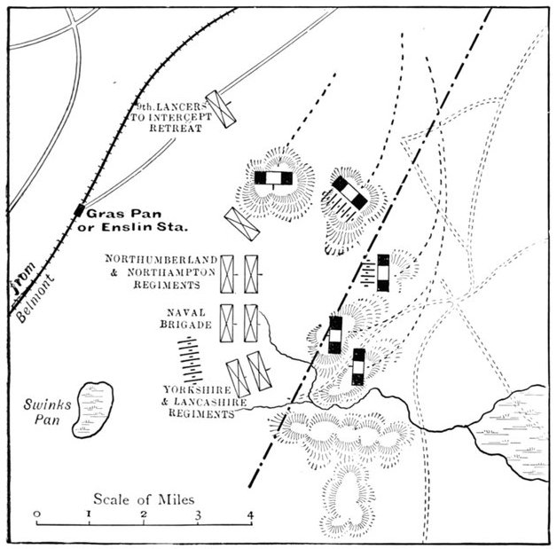 | Lord Methuen takes charge of the Western Campaign—Reconnaissance towards Belmont—Heavy loss of officers—Lord Methuen reinforced—Advance to Fincham's Farm—British victory at Belmont—Chaplain Hill's bravery—Contraventions of usages of war—Boers retreat—Frontal attack criticized—Lord Methuen congratulates the troops | 130-144 |