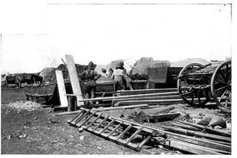 Getting the water-carts, &c., across amidst clouds of dust.