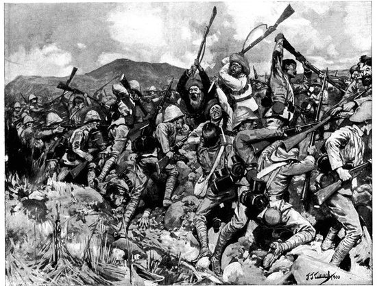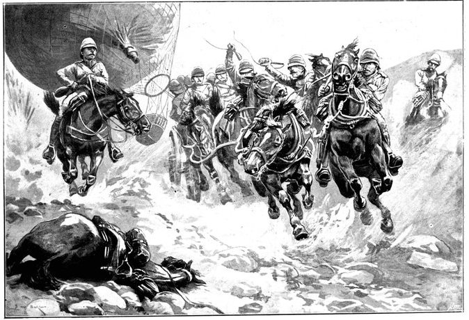 CLEARING THE ROAD TO KIMBERLEY: THE BRITISH CAVALRY CHARGING AT KLIP DRIFT.