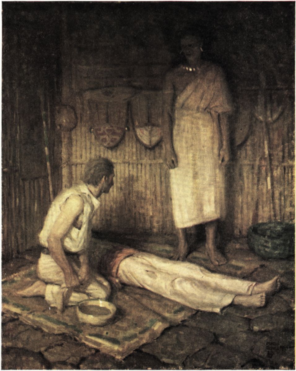 “But how is he to cross the mountain with us,” replied Jimmy, “even if we get him down to the beach? Better let him stay till to-morrow, and I will bring him round to Nukuheva in the boats.”