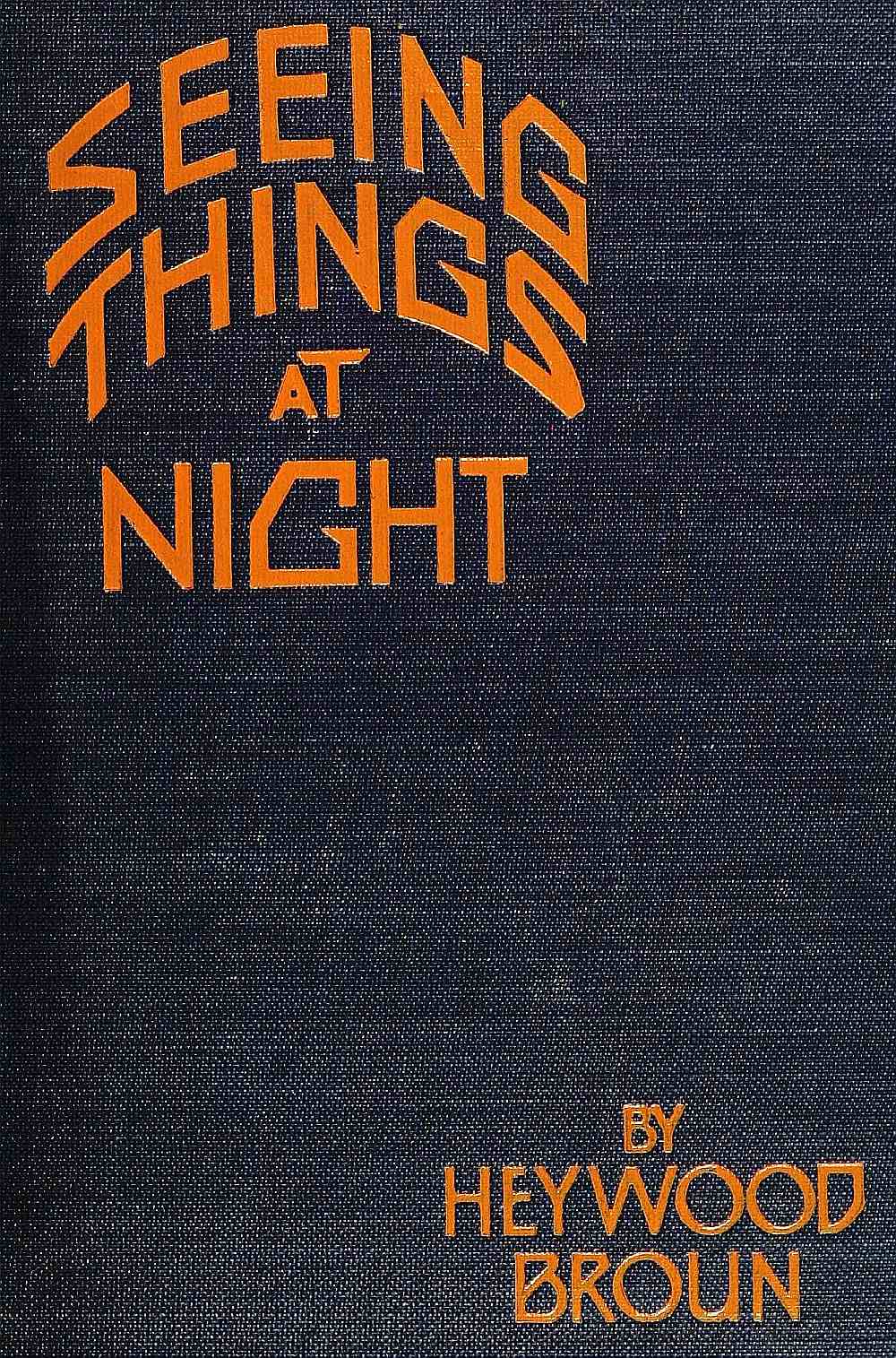 THE first difficulty was the title. It was felt that Seeing Things at Night might suggest theatrical essays to the exclusion of anything else. That was not the author's intention. He meant to suggest rather newspaper articles of any sort done more or less on the spur of the moment for next day's consumption. There was also some question as to the order in which the various "pieces" should be arranged. The author was tempted to follow the example of Adolf Wolff, a free verse poet who published a volume some years ago called Songs, Sighs and Curses, and explained in a foreword, "When asked in what sequence he would arrange his poems, Wolff threw the manuscripts in the air, saying 'Let Fate decide.' They now appear in the order in which they were picked up from the floor."