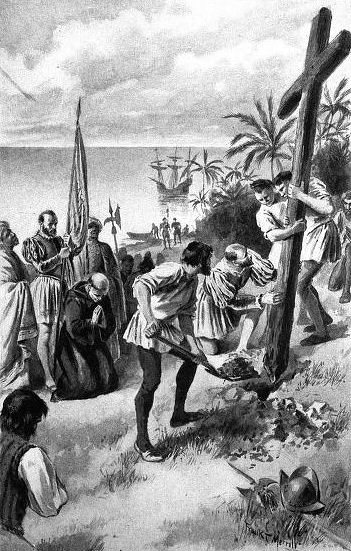Magellan planting the Cross in the Philippine Islands.
