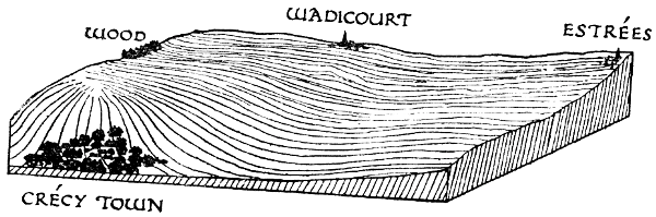 The terrain of Crécy offers, therefore, an excellent opportunity for the reconstruction of the medieval scene, and I will attempt to bring it before the eyes of my readers.