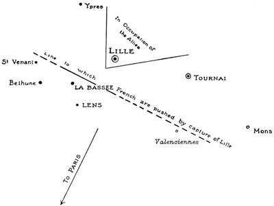 Sketch Map showing how the Allies holding Lille thrust the French back