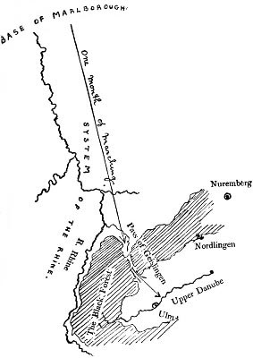 | Map showing the peril of Marlborough’s March to the Danube beyond the Hills which separate the Rhine from the Danube | 45 | |