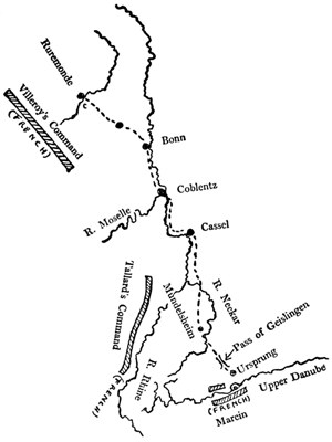 On the Upper Rhine, and in Alsace generally, lay Tallard with his corps. This marshal had captured certain crossing-places over the Rhine, but had all his munitions and the mass of his strength permanently on the left bank.