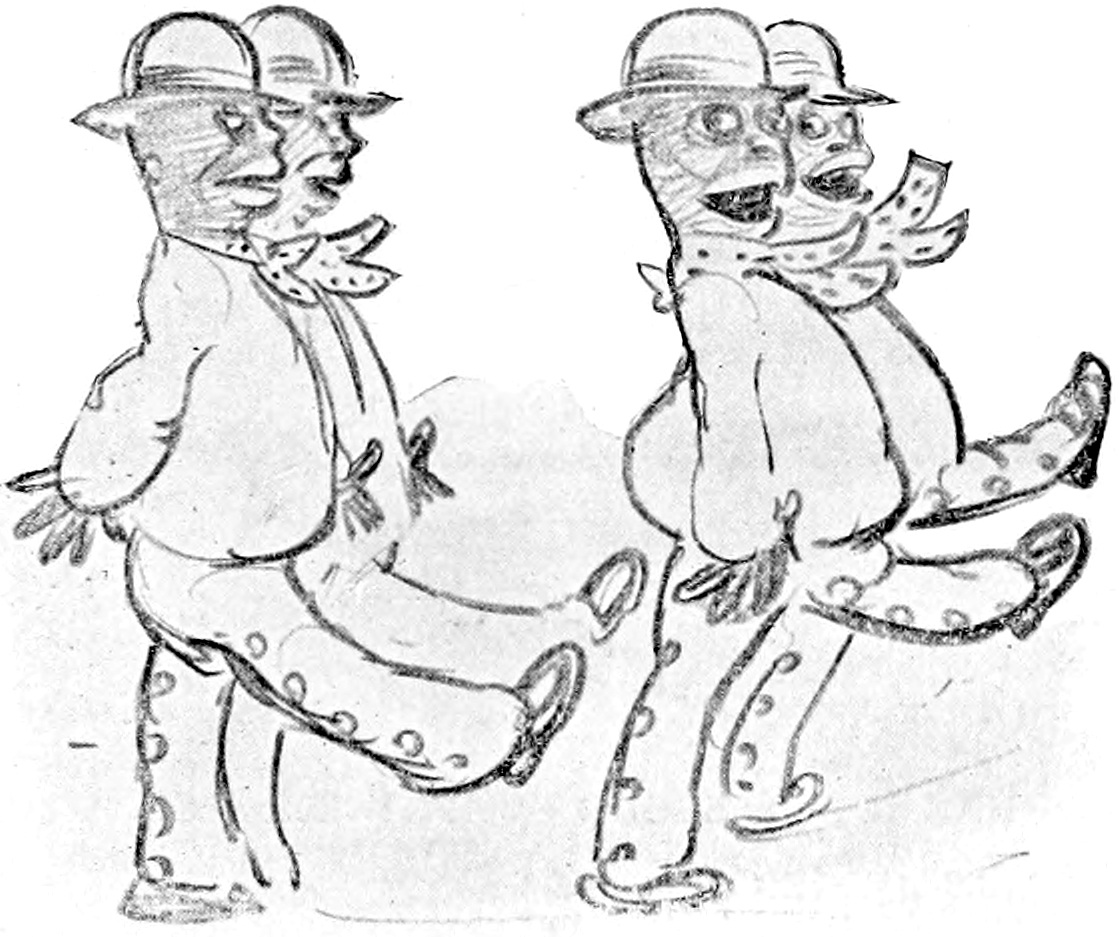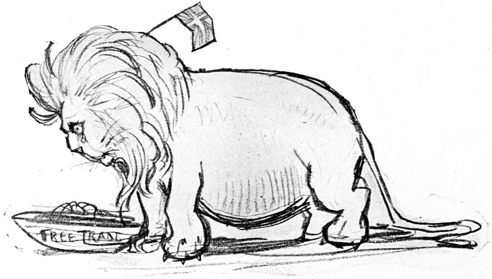 Witnesses, continuing, affirmed that they were reared in the same way to the age of six months. It was then determined to feed the one (Tom) in the Protectionist, the other (Bill) in the Free Trade spirit. All manner of food was stuffed into the latter at all hours; the former had a sparse meal once a week of honest English husks and bean-pods, with a little straw. Look at them now! “Kruger,” the free-trader pig, was so fat he could hardly walk. His life was a burden: he implored the release of death. “Roosevelt,” on the other hand, was a frisky, amiable, and active pig, capable of the most amusing tricks, and a fit companion for the best wits of the age.