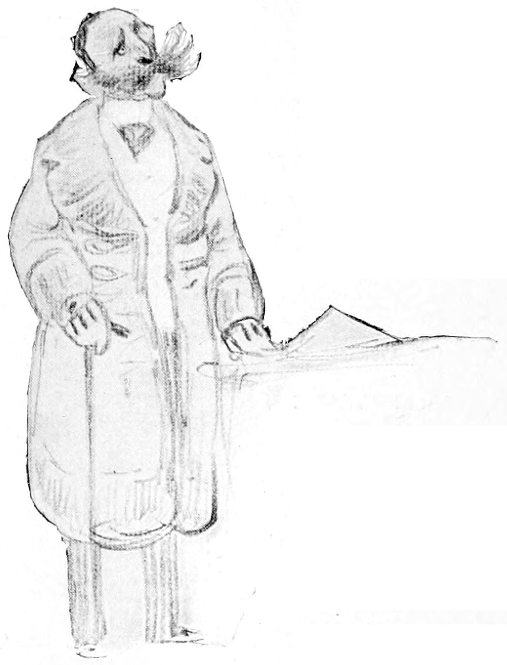 It was perhaps on this account that his speech was not very clearly heard. The opening sentence, however, rang high and clear: “I shall detain you,” he said, “for but a very few moments.” What followed was drowned in a blast of trumpets preceding the arrival of⸺