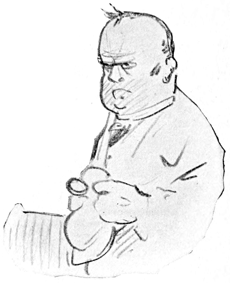 The Counsel for the Cobden Club, at the risk of his fortune, rose to protest. His disclaim was not so much against the Pigs themselves (porcs de soi), for the Court had allowed them, and he (emphatically) was not there to contradict the superior wisdom of the Court. It was rather against the presence of two witnesses in the box at the same time. It was wholly opposed to the spirit of Our English Law. Latterly that spirit had been attacked in a hundred ways: Prisoners could speak for themselves, even solicitors—he was ashamed to say—could plead in inferior Courts, but two witnesses in the same box was more, he thought, than the temper that produced an Eldon and a Halsbury could stand. Let alone the relaxation of the moral bond (for how could these two witnesses feel in common the awful meaning of an individual oath?) let alone the moral bond....