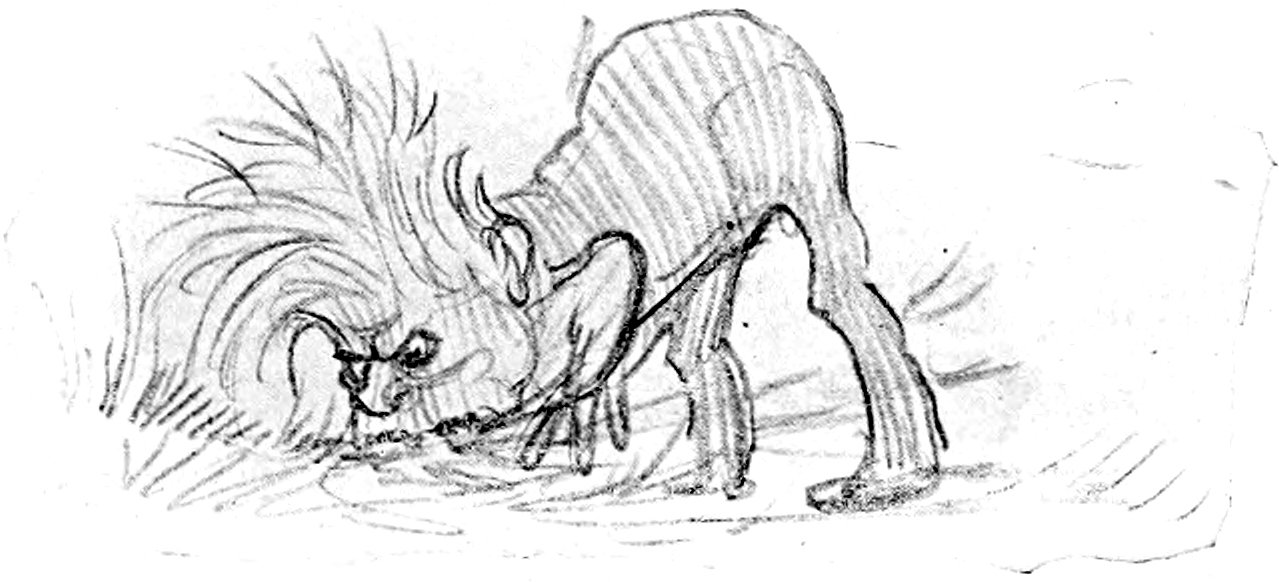 After some delay, during which the anxiety of the Court was terrible to behold, a Marabout arrived announcing that the Faithful Animal and Loyal Servant of the Empire had breathed its last that very hour in its Rooms at St. James’s! The Marabout, who elected to be sworn in the Hindoo manner, that is, formally and without prejudice, recounted with many sobs the last hours of the noble Pachyderm. It was chosen, he assured the Court, on account of its peculiar longevity; it being assumed by His Highness the Maharajah (here witness bowed once to the Court, once to the Royal Arms, and once to nothing in particular) that an animal which had outlived the Empire of the Great Mogul would survive the protracted Inquiry upon the Fiscal Relations of the &c., &c. Alas! Providence had otherwise disposed!