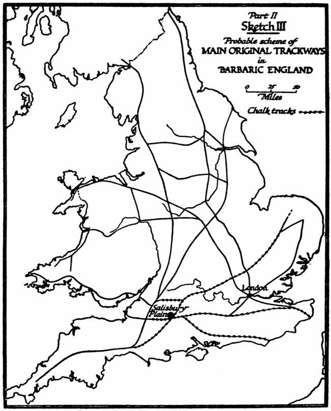 | The Three Divisions of the British Pre-Roman Road System—the System of which Salisbury Plain was the “Hub”: The System Connected with London: Cross-Country Communications—The Three Factors which Have Determined Travel in Britain | 116 | |