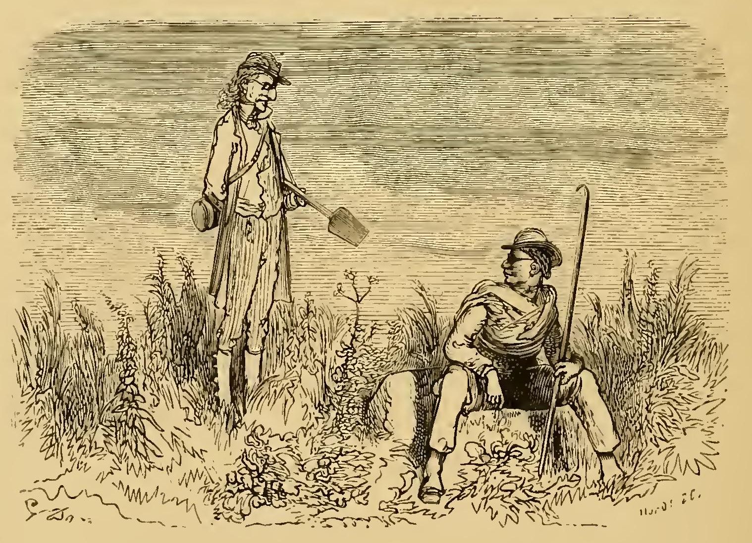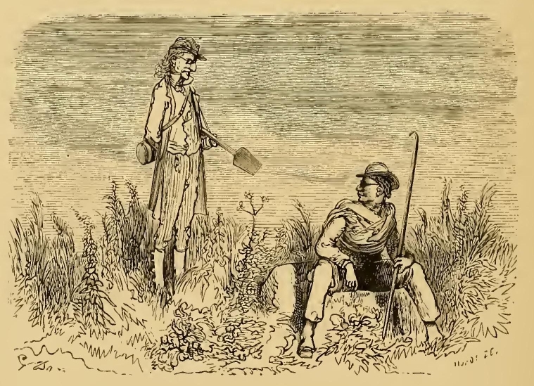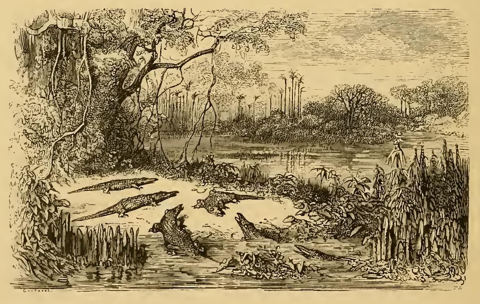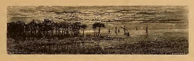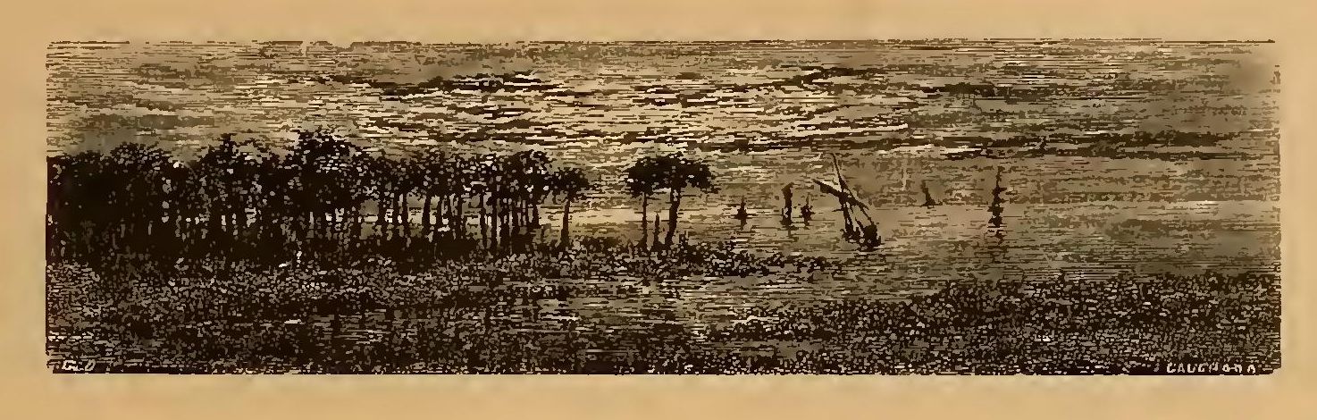 Beyond, the monotonous plain of the ferns, bathed in light, stretches away as far as the eye can reach. Their green fans expand beneath the sun which colors, but does not cause them to fade. Upon the horizon a few scattered trees lift their slender columns. You see now and then the silhouette of a herdsman on his stilts, inert and standing like a sick heron. Wild horses are grazing half hid in the herbage. As the train passes, they abruptly lift their great startled eyes and stand motionless, uneasy at the noise that has troubled their solitude. Man does not fare well here,—he dies or degenerates; but it is the country of animals, and especially of plants. They abound in this desert, free, certain of living. Our pretty, cutup valleys are but poor things alongside of these immense spaces, leagues upon leagues of marshy or dry vegetation, a level country, where nature, elsewhere troubled and tortured by men, still vegetates as in primeval days with a calm equal to its grandeur. The sun needs these savannas in order properly to spread out its light; from the rising exhalation, you feel that the whole plain is [016] fermenting under its force; and the eyes filled by the limitless horizon divine the secret labor by which this ocean of rank verdure renews and nourishes itself.