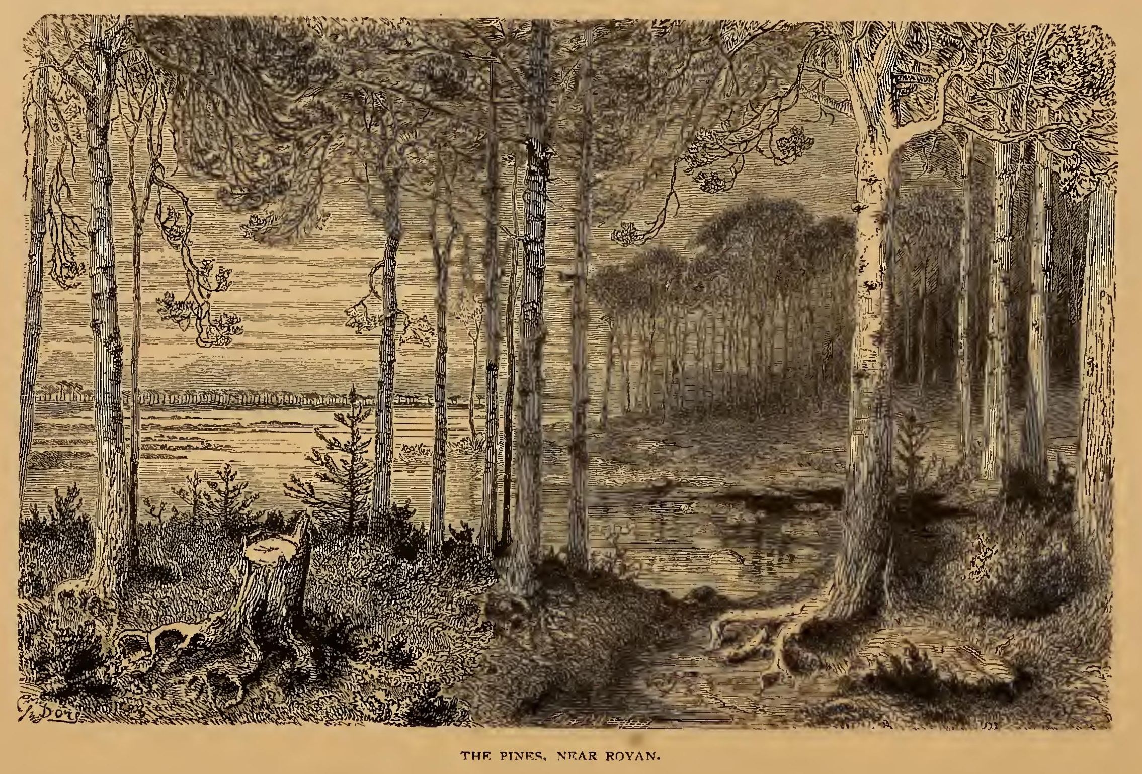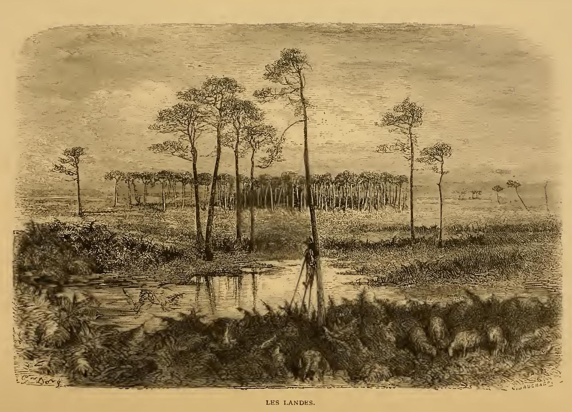 Around Bordeaux are smiling hills, varied horizons, fresh valleys, a river peopled by incessant navigation, a succession of cities and villages harmoniously planted upon the declivities or in the plains, everywhere the richest verdure, the luxury of nature and civilization, the earth and man vying with each other to enrich and decorate the happiest valley of France. Below Bordeaux a flat soil, marshes, sand; a land which goes on growing poorer, villages continually, less frequent, ere long the desert. I like the desert as well.