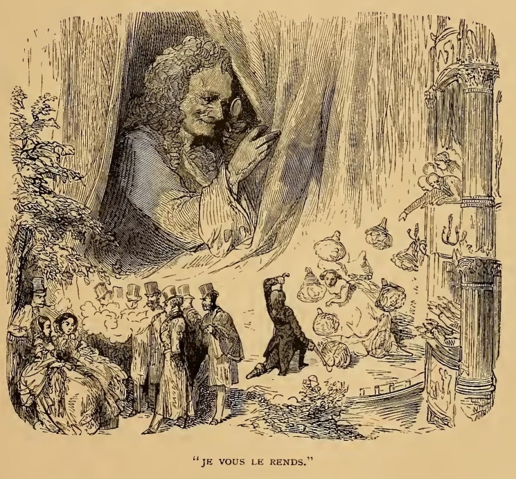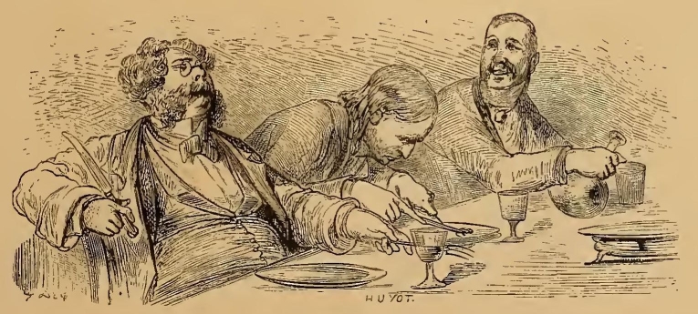 After the banquet, he had made the horses gallop; he had passed by Ribettes. Ribettes had swallowed dust for a whole hour; Ribettes wanted to get ahead again, but wasn’t able. Ribettes grew very angry. They had dared Ribettes. The story of Ribettes and the mutton was told eight times in an hour, and seemed the last time as delightful and as new as the first. They laughed like the blest.