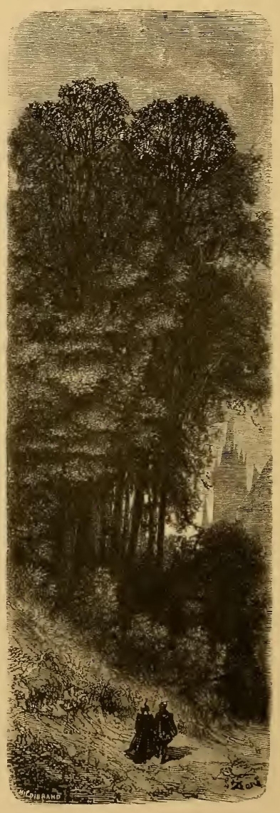 Their arches mark it out like a cathedral ceiling, and the immense nave vanishes several leagues away, radiant with stars; these stars fling out flames. At this moment, they are the only living things; the valley is black, the air motionless; you can only distinguish the tapering tops of the poplars, erect in the tranquil night, wrapt in their mantle of leaves. The topmost branches stir, and [491]their rustle is like the murmur of a prayer echoed by the distant hum of the torrent.