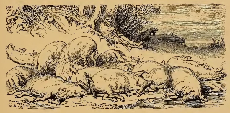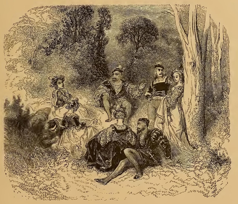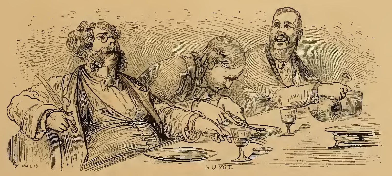 Nowadays this mythology seems unmeaning, and the thought flat. Look at the environs, the surroundings save it. Carelessness, intoxication, are on one side. It is born between two glasses of good wine thoroughly relished, in the midst of an unpremeditated letter. Are people so very nice at table? It is a refrain they are humming; flat or not, is of no consequence. The main thing is good humor and the inclination to laugh. I picture to myself the honest fellows, well-dressed, portly, their eyes still shining from the long dinner of yesterday, with rubies on their cheeks, perfectly ready to sit down to dine at the first inn and to bedevil the maid. La Fontaine did so, especially when he travelled. They made stops, forgot themselves, the broad jokes flew.[481]