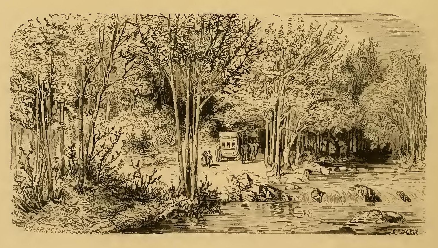 In the first place, you see the landscape, which produces descriptions that you offer to the public. In the coupé, your only spectacle is the harness of the horses; in the interior, you see through a tiny window the trees trooping by like soldiers carrying arms; in the rotunda, you are in a cloud [469]of dust that dims the landscape and strangles the traveller.