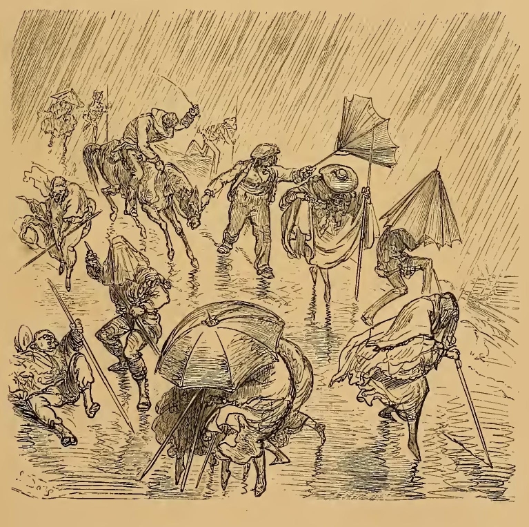 [480]The two travellers were talking of the tides of the Garonne, and of the reasons for them given by Gassendi and Descartes. This very obliging god relates to them how Neptune thereby punishes an ancient rebellion of the rivers. “Then the honest river-god takes himself off, and when he has gone a score of paces the good soul is melted entirely into water.”