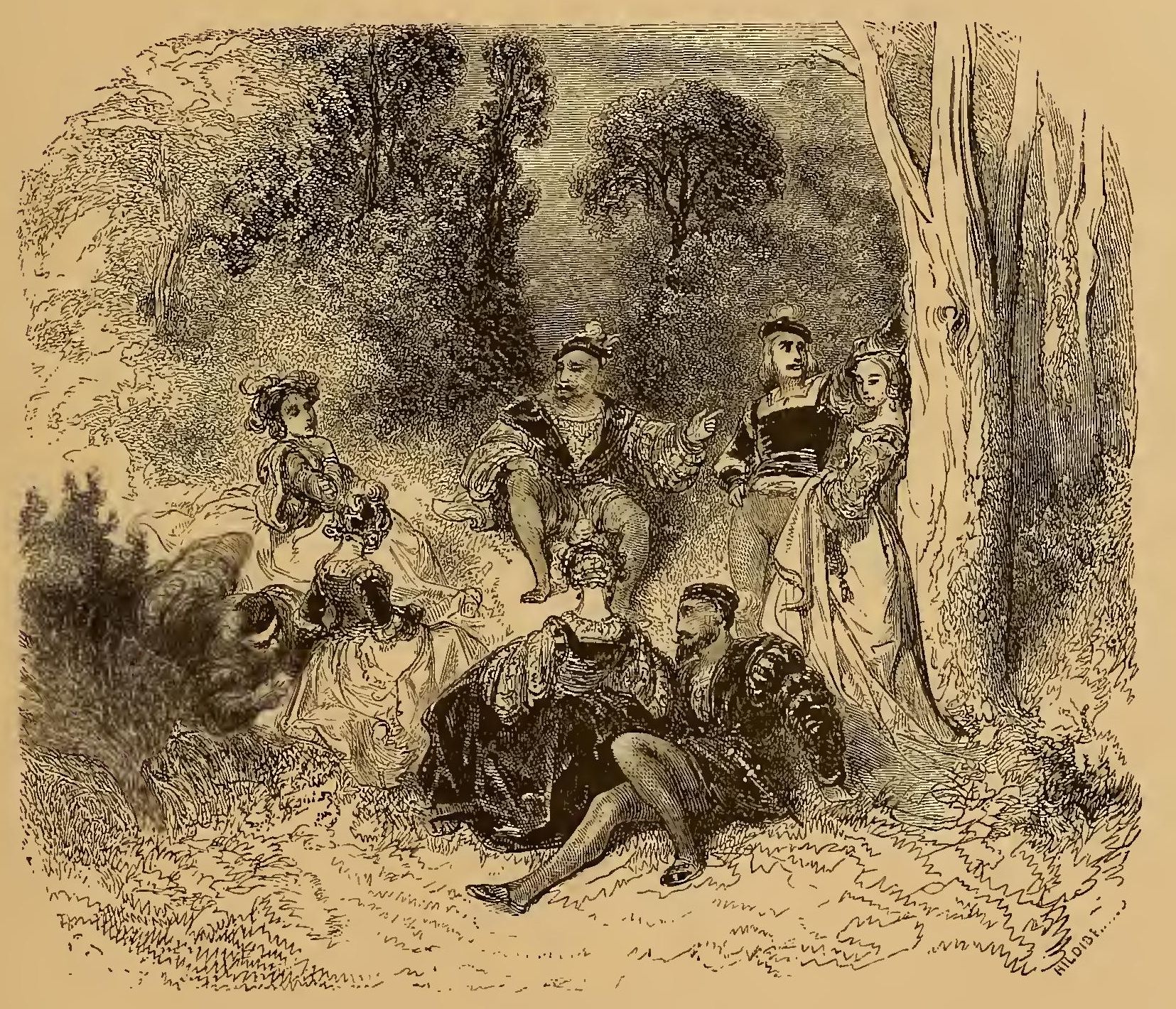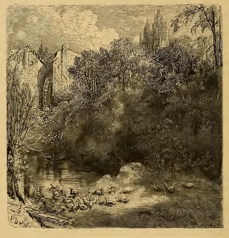 [479]"I am the god of this stream, who, with an ever inexhaustible urn, tilted at the foot of that hill, take the task in this meadow of pouring unceasingly the water, which makes it so green and flowery. For eight days now, morning and evening, you come regularly to see me without thinking to pay me a visit. It is not that I do not deserve that you should pay me this respect; for, in short, I have this advantage, that a channel so pure and clear is the place of my appanage. In Gascony such a portion is very neat for a cadet.”